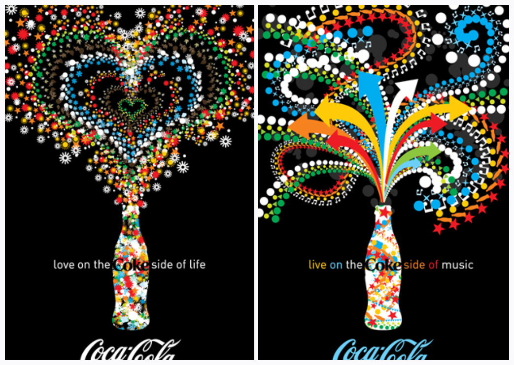I tried consciously to use the warm ‘Coca-Cola’ colours, and to focus on positive feelings and shapes in the graphics. The aim was to create something happy and fresh, in line with the iconic ‘Coca-Cola’ images.